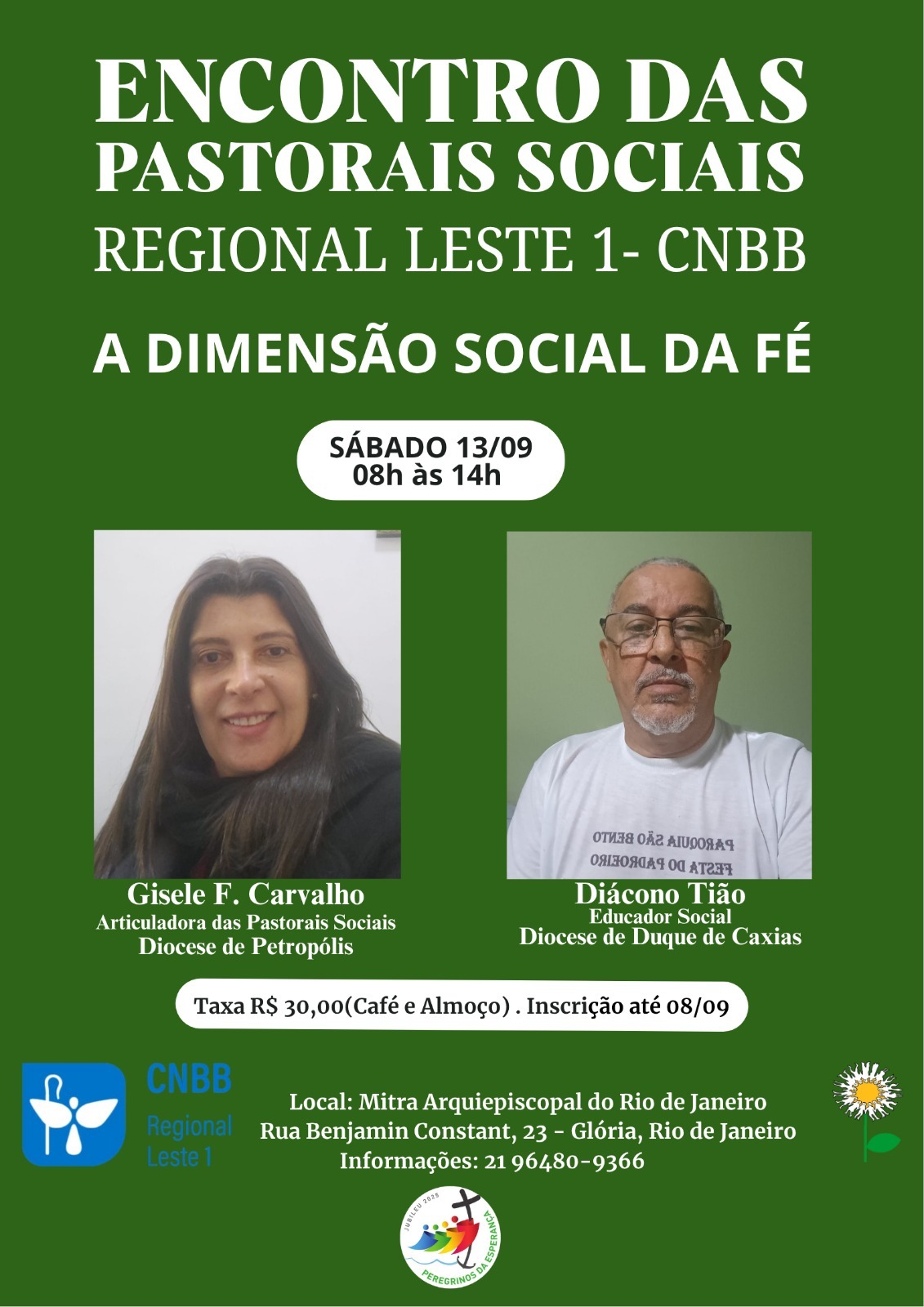 O objetivo é fortalecer a caminhada das pastorais sociais à luz do Evangelho, integrando fé e vida, espiritualidade e compromisso com os pobres e marginalizados. O encontro contará com a presença de Gisele F. Carvalho, articuladora das Pastorais Sociais da Diocese de Petrópolis, e do Diácono Tião, educador social da Diocese de Duque de Caxias.