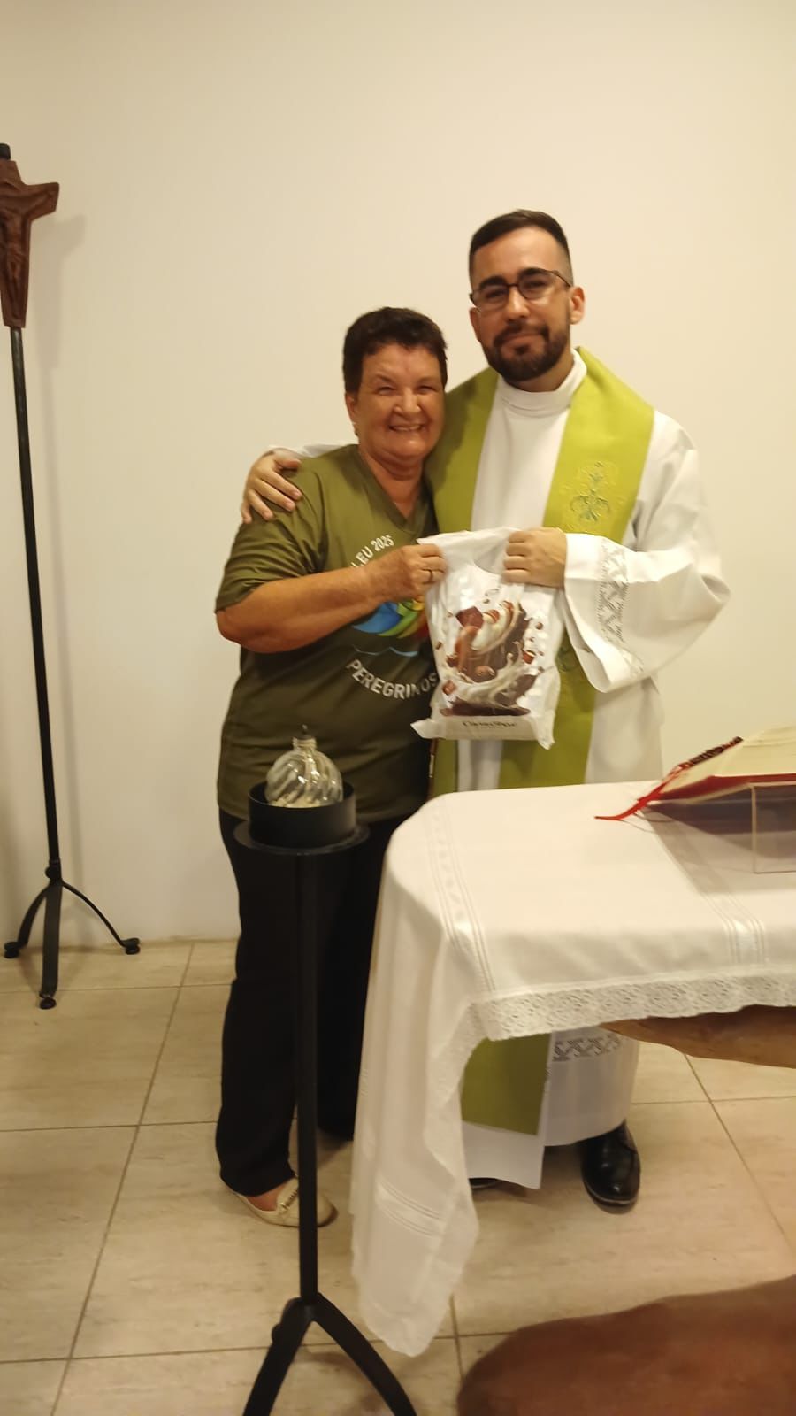 A coordenadora Lúcia com o Padre Jovane.