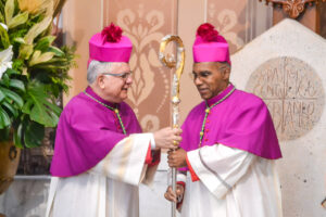 Diocese de Nova Friburgo acolhe Dom Pedro Cunha Cruz como novo bispo diocesano À porta da catedral, Dom José Francisco ...